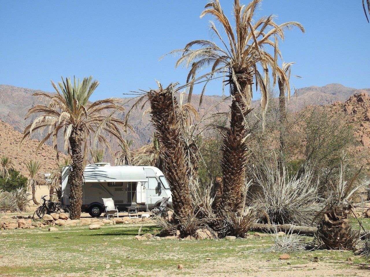Vanmorgen zijn we gaan verhuizen naar de overkant. Ik zag de weersverwachting voor .a.s. donderdag en dan kan het 75 km p/h gaan waaien. Wij stonden bij een palmboom die wat ziek is, een gedeelte onderaan de stam is aangetast. Voor onze gemoedsrust zijn we gaan verhuizen, 2 jaar geleden vertrouwden we het al niet. We zijn zeer tevreden met dit plekje , eventueel schaduw van een struik en een geweldig uitzicht . Een nieuwe ervaring, ongeveer 30 m van onze ‘oude ‘ plek, we zijn blij.