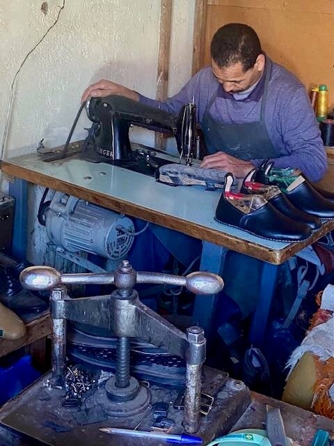 Daar kwam Karel vanmorgen op bezoek, we hebben weer heel wat bijgepraat. Karel en Marie José kennen we uit ongeveer 2008, ze zijn ook oud gedienden, Marokkaanse camperaars van het eerste uur. Daarna nog even op de fiets naar de stad voor wat boodschappen. Ik had warempel vergeten na het boodschappen doen om mijn display op de fiets te plaatsen, dat merkte ik toen we heuvelopwaarts moesten naar de groenteboer. Al fietsend de display uit mijn zak gepakt en geplaatst op de fiets, daarbij kennelijk wat slingerend, Everdien moest remmen en afstappen, knapte bandje van haar sandaal kapot. De schoenmaker heeft hem voor 10 Mad weer genaaid.