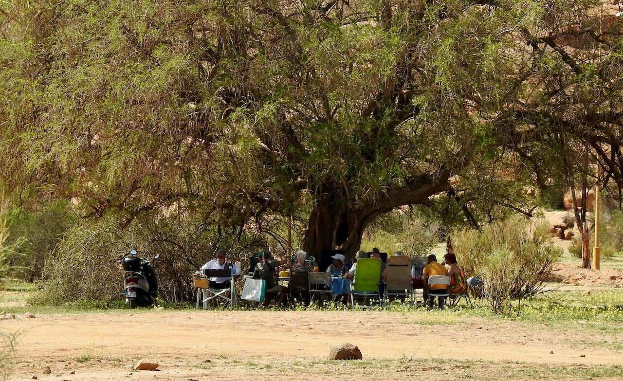 Vanmorgen kwamen Gerrie een Annie afscheid nemen, mede-Achterhoekers, dankzij o.a. hun kan ik mijn dialect, plat proat’n zoals wie zeg’n, blijven beoefenen. We beginnen ons langzaam te realiseren dat we binnenkort van deze prachtige omgeving, deze mooie plek met leuke mensen, in de eerste plaats natuurlijk onze vrienden van de Avondrood + groep, afscheid zullen nemen. Maar ook de andere ontmoetingen maken het verblijf hier tot een feest en niet te vergeten het dorp zelf. Maar gezien de windverwachtingen voor de komende 2 dagen volgens de app die we het meest betrouwbaar achten, 80Km p/h , zal het w.s. zaterdag worden dat we richting Taroudant zullen vertrekken.