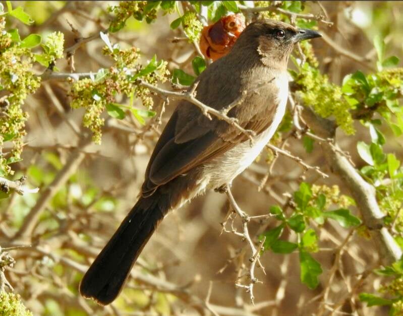 We hadden gedacht dat we veel zouden lezen op deze bij vlagen stormachtige dag. Niets was minder waar , het was donderdag bezoekdag. In het begin van de middag kwamen hier Bea en haar nicht Dicky die we gisteren al even op de markt hadden gezien hier met met een vraag . We hebben naar aanleiding daarvan een tijdje gezellig met elkaar zitten praten. Niet lang daarna kwamen Karel en Marie-José afscheid nemen omdat ze morgen vertrekken. Ook dat was een leuk gesprek, zo hadden we een prettige middag in een zandstorm. Wie we ook op bezoek kregen waren de Kleine Zwartkop, de Grauwe Buulbuul, deze deden zich tegoed aan de dadels. Ook kwam er een Zwarte tapuit en daarna een Witkruintapuit vlakbij de camper op de grond zitten, geen van de vogels goed kunnen fotograferen door de smerige ramen.