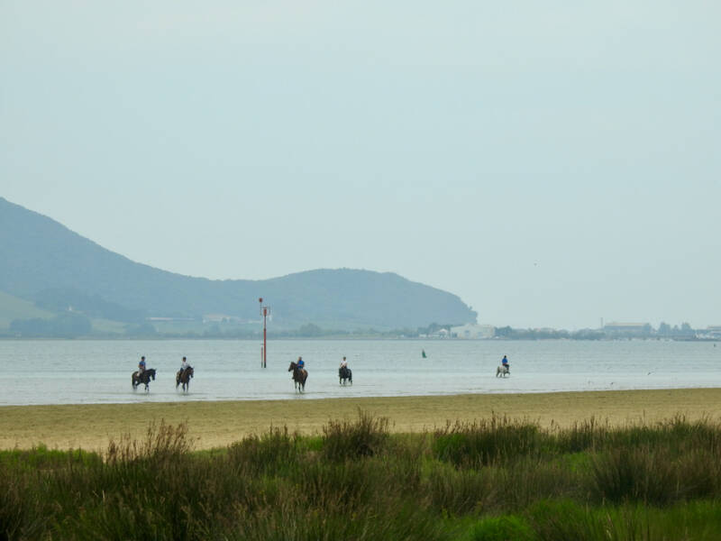 Vanmiddag was er af en toe zon en hebben we buiten zitten lezen met zicht op de paarden. Er staan er wel een stuk of honderd als je de pony’s meetelt. Er liggen hier 2 campings dicht bij elkaar, een ritje met een paard kost voor 1uur €12,-, als je langer gaat betaal je minder per uur.