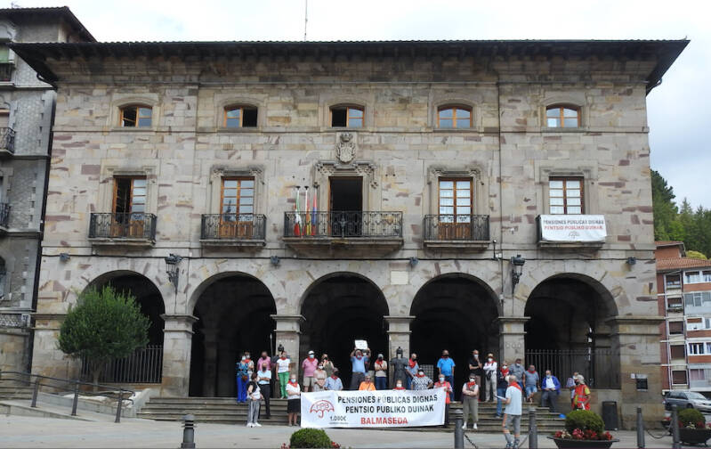 Voor het gemeentehuis in Balmaseda demonstreren iedere maandag gepensioneerden voor een hoger minimumpensioen.
