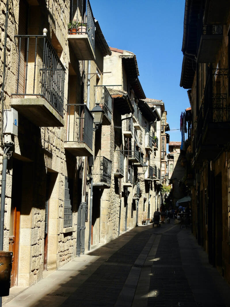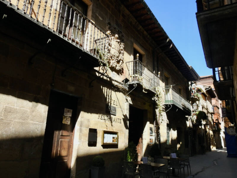 We waren vroeg in Laguardia, de zon stond nog laag en door de nauwe straatjes was er veel schaduw. Ook waren veel huizen van een geel soort natuursteen waardoor de foto's donker uitvallen. Daarom zijn we niet zo tevreden over de kwaliteit van de foto's, we kunnen de camera wel beter instellen, maar we kiezen voor de automatische stand op on ze bridgecamera