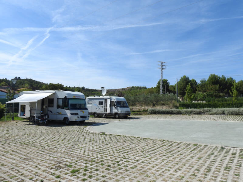 Gelukkig was het vrij rustig toen wij er kwamen, in de loop van de middag liep de cp wel vol met campers van verschillende nationaliteiten ( vooral Fransen) tot aan een Zweedse buurman aan toe. De cp hier is gewild omdat die niet ver van het natuurgebied Bardenas Reales ligt wat ook de reden is dat wij hier zijn. Overigens willen we daar morgen naar toe, vandaag was het heel somber weer en er viel in de loop van de middag wat lichte regen wat vanaf een uur of 5 overging in een gestage regen.
