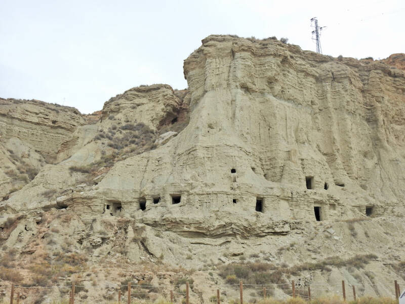 We zijn even het dorp ingewandeld en zijn langs de grotwoningen gelopen die hier achter de cp in de rotsen zijn uitgehakt. Deze grotwoningen zijn tot en met de 20e eeuw bewoond geweest door dorpelingen die een normale woning niet konden betalen. Er zijn nog tien-tallen grotwoningen waar je een blik in kunt werpen, een aantal zijn ingestort.