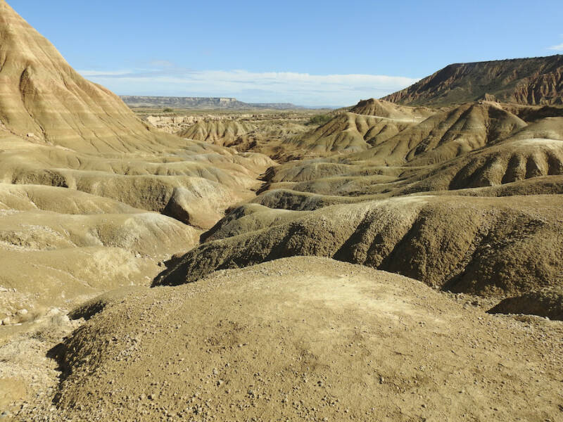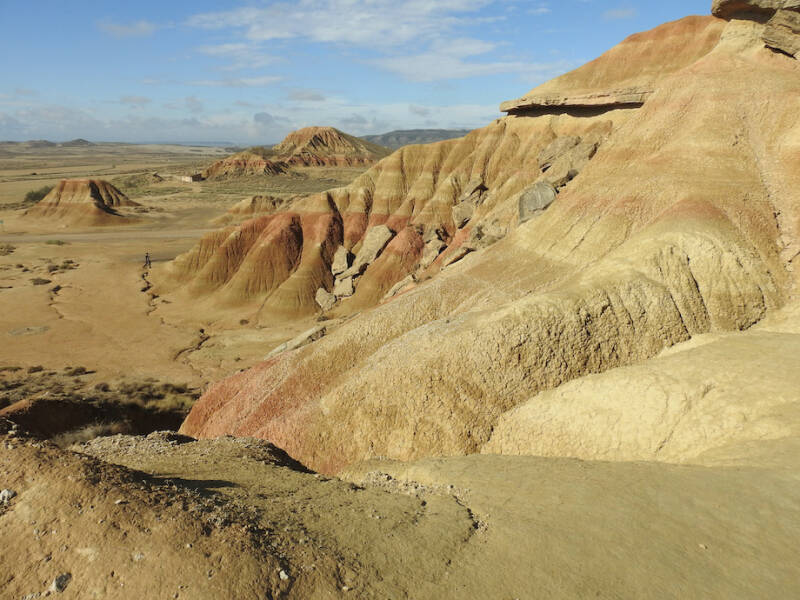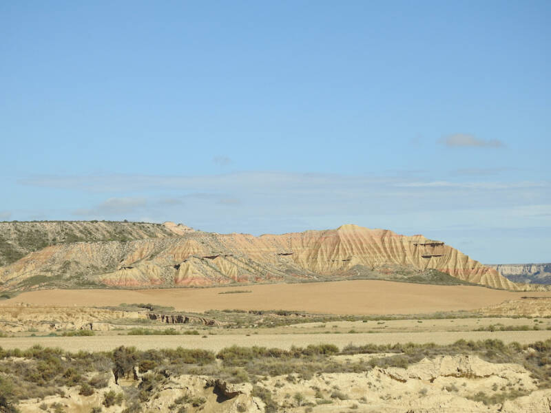 We moesten over een piste rijden en na een km of 5 kwamen we bij het gedeelte wat interessant is, la Blanca Baja. Daar hebben we op 2 plaatsen gestopt, oa bij de iconische Castildetierra, symbool voor Bardenas Reales. Een belangrijk stuk was afgesloten en alleen toegankelijk van 12.30-13.30uur, wat natuurlijk jammer was. Maar dat was omdat in de overige uren daar soldaten spelen in het prachtige gebied. We hebben toch voldoende gezien van het natuurgebied en ervan genoten.