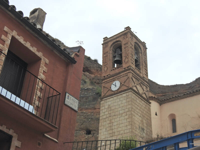 We staan nu in Arguedas, achter de cp zijn in de rotsen tientallen grotwoningen die nog bewoond waren in de vorig eeuw.