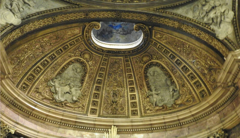 Hier zijn duidelijk de geglazuurde dakpannen te zien op de koepel van de kathedraal El Pliar