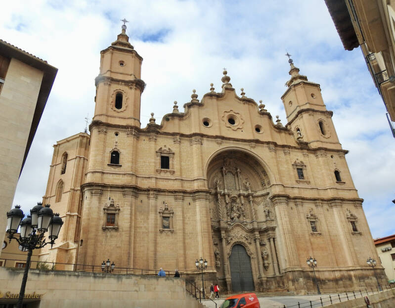 De grote kerk de Iglesia de Santa María Mayor domineert de stad al van verre.