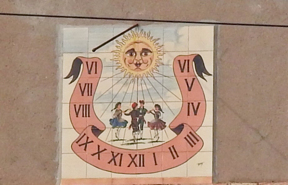 Het kasteeltje Castell de Bellair d'Empordá is gerestaureerd, is nationaal erfgoed, plaatsen ze zo'n foeilelijke klok .