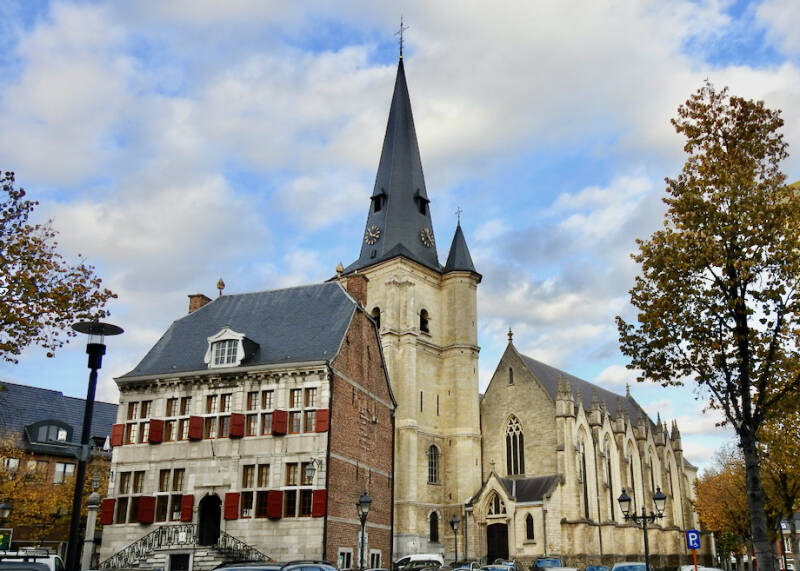 Het Marktplein met de St Mauritius kerk in Bilzen