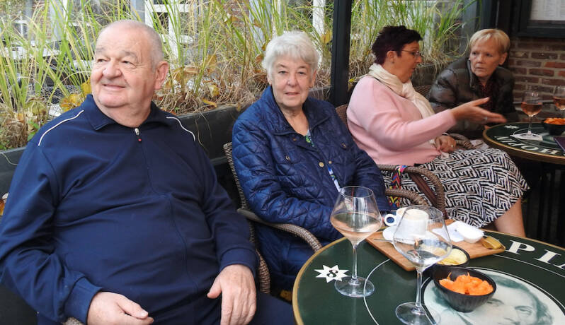 Dan maak je een foto van een terrasje, vraagt deze man, tot ongenoegen van zijn vrouw, of ik van hen een foto wil nemen.