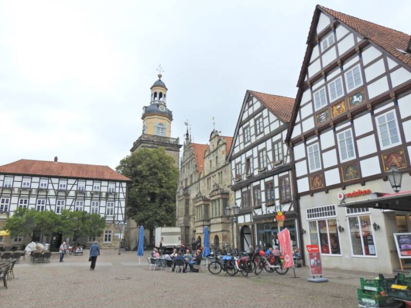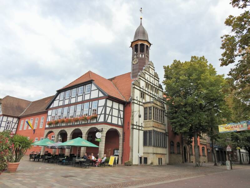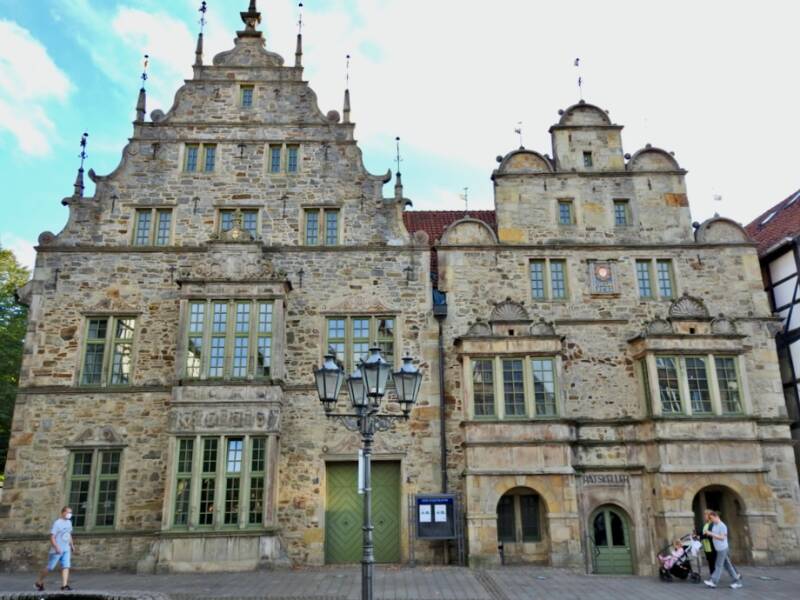 Ook aan de marktplaats staat het vroegere Rathaus, tegenwoordig Ratskeller) is een fraai voorbeeld van de Weserrenaissance, duidelijk zie je hier de Hollandse invloeden aan de trapgevel. Het gebouw dateert uit de 13e eeuw maar werd in 1583 herbouwd in de Weserrenaissance stijl.