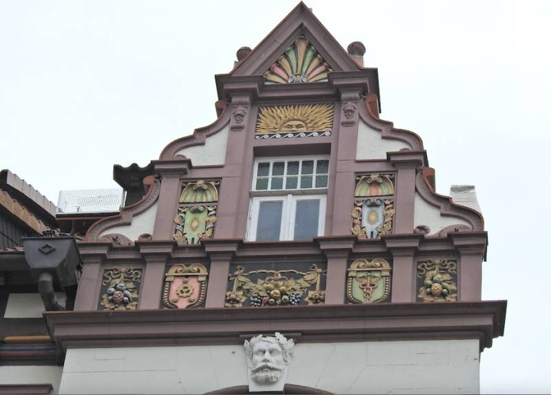 Deel van de prachtige gevel van het Leisthaus, natuurlijk gebouwd voor een rijke koopman (1585-1589)