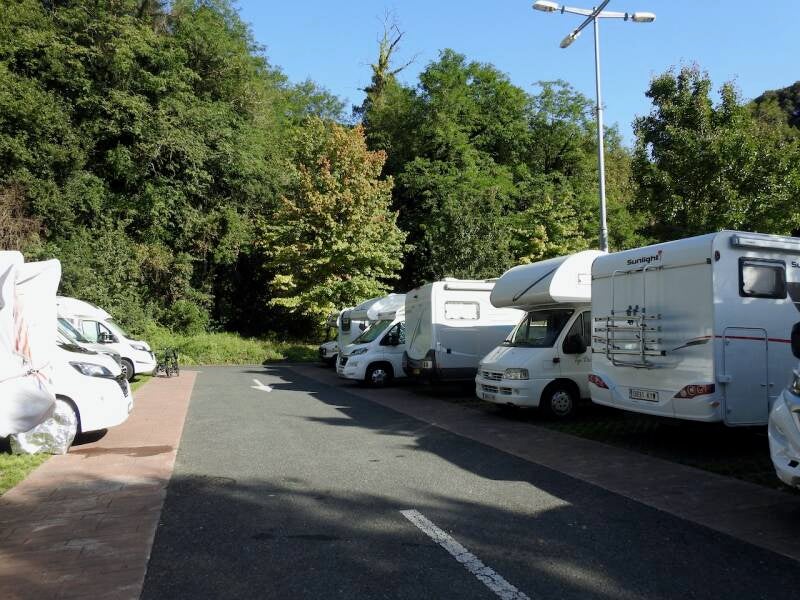 We zijn om 9.30 uur vertrokken, de 1ste 17 km via een prachtige kustweg meestal hoog slingerend boven de rotskust. Er waren gelukkig geen vrachtauto’s maar wel kuddes wielrenners, de laatste 33 km zijn we via de tolweg gegaan, het kostte slechts €4,79. We zijn via die tolweg naar San Sebastián gereden of Donostia in het Baskisch . We zijn hier 4 jaar geleden ook geweest en hebben met name goede herinneringen aan de pintxos, het zal ook eens niet. Maar als je van hartige dingen houdt dan kom je daar al snel op uit ipv op gebakjes of ijsjes. We waren voor 10.30 uur op de cp waar we een van de laatste nog vrije plaatsen konden bemachtigen , zelfs met tv ontvangst. 4 jaar geleden betaalden we €7,60 per dag, nu €3,30 omdat het na 1 okt. is. Je staat hier dicht op elkaar maar deze plek is geschikt om de stad te bezoeken en is ’s nachts rustig. Het betalen verliep niet vlekkeloos, een alleraardigste jonge dame kwam ons helpen. Het bleek dat onze bankkaart niet werkte, dat was het probleem, de Visa creditcard gelukkig wel.