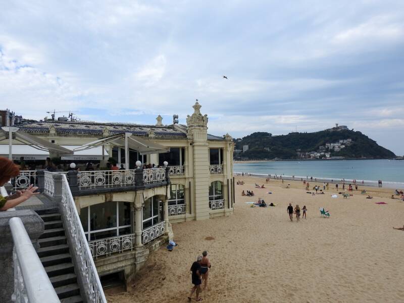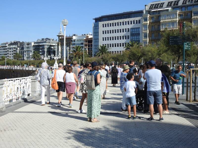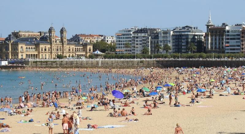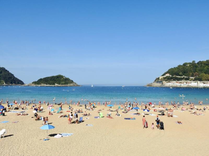 Het wel hele volle strand in San Sebastián en dat half oktober..