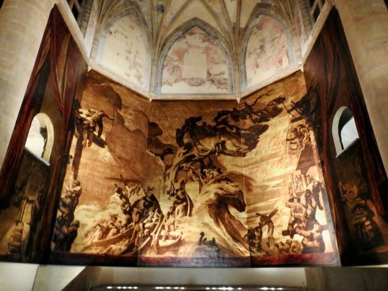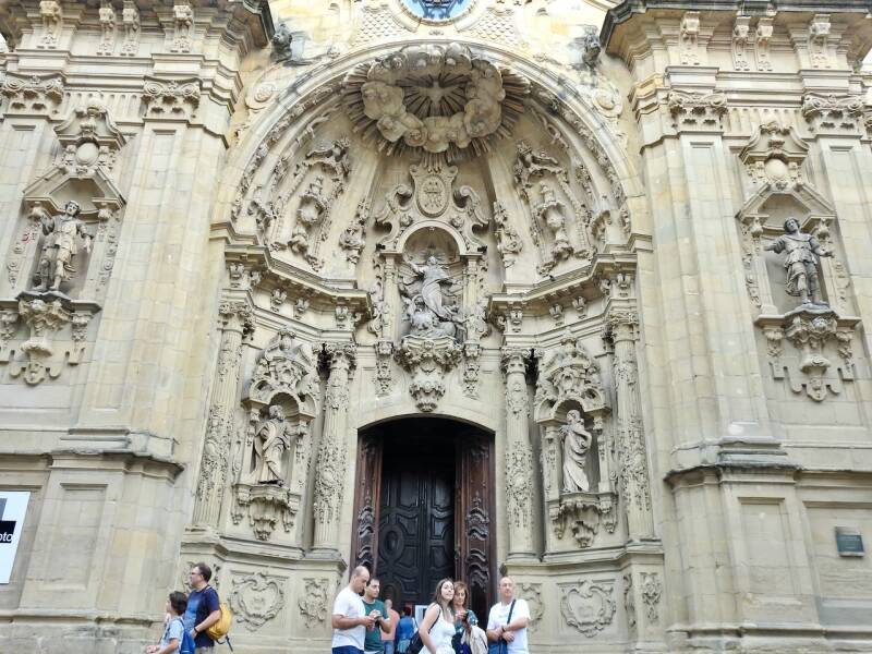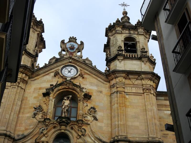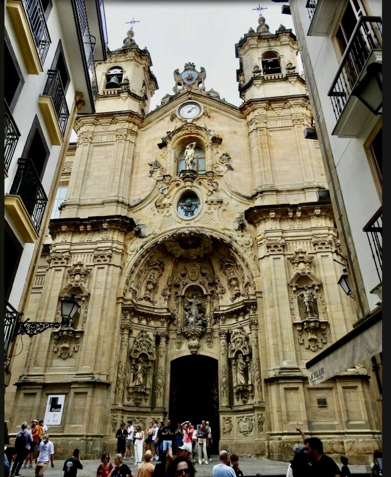 Aan het eind van de ochtend zijn we weer de stad ingewandeld, omdat het bewolkt was was het op het strand niet zo druk, op de boulevard werd minder druk gewandeld. Maar wel weer een prima sfeer, kunstig was een marionettenspeler in de weer. We zijn vervolgens naar de kerk Iglesia de Santa Maria del Coro gewandeld, deze is gebouwd in de 18e eeuw in een mix van stijlen, gotisch, churriguereske (Spaanse barok) en neoclassicistisch. De Barokke gevel heeft 2 torens, een klok en een beeld van San Sebastián. Het interieur is wat minder bijzonder en werd wat overschaduwd door een tentoonstelling van wel uitzonderlijk lelijke schilderijen, vol glitters. Bij de kerk was ook een museum met religieuze kunst van de afgelopen eeuwen.