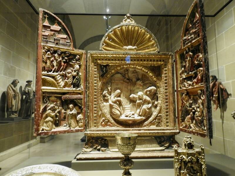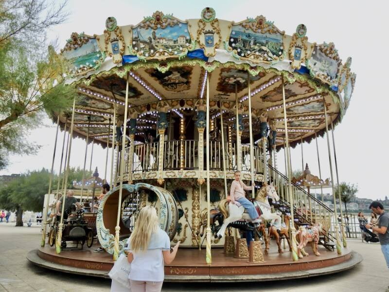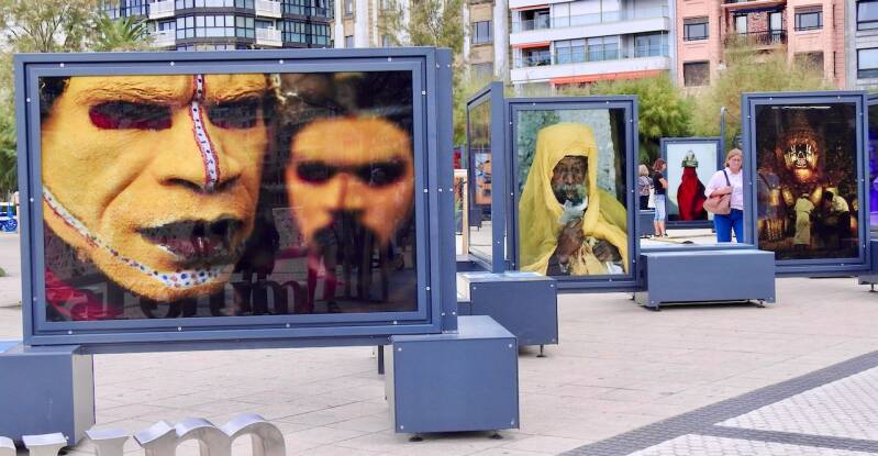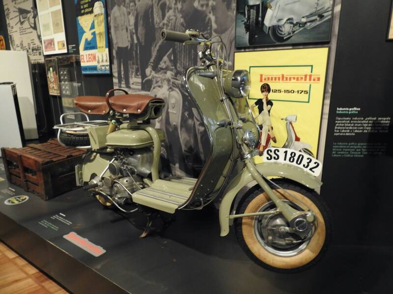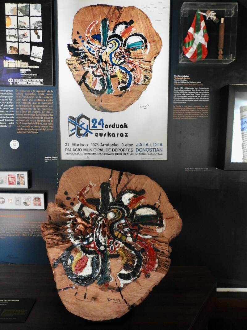 We zijn met de bus naar het centrum gereden, we zijn aan het begin van de boulevard uitgestapt. Dan weet je niet wat je ziet, de stranden zijn overvol, een vrije dag en bijna 30º. Mensen schuifelen over de boulevard waar artiesten optreden, de onvermijdelijke levende standbeelden, straatmuzikanten, een jong stel die prachtig danste, marionettenspelers en aan het eind van de boulevard een prachtige vintage draaimolen. Wat een bruisend geheel, echt genieten. Via het oficina de turismo zijn we verder het oude deel van San Sebastián ingewandeld waar het erg druk was en ook weer zo levendig. We zijn eerst naar het museum San Telmo voor Baskische cultuur gewandeld , €3,- p.p. entree. Naast de gebruikelijke voorwerpen uit de diverse (pré) historische periodes, waren er ook meer moderne dingen van na de industriële revolutie met ook aandacht voor de klassenstrijd, de Burgeroorlog en de Baskische afscheidingsbeweging. De 1ste radio’s, pickups, solexen en oude scooters waaronder naast natuurlijk een Vespa ook een Lambretta kon je daar bewonderen. We vonden het een mooi museum maar ook wat vreemd, waarom kunnen we niet goed omschrijven, het is het gevoel.