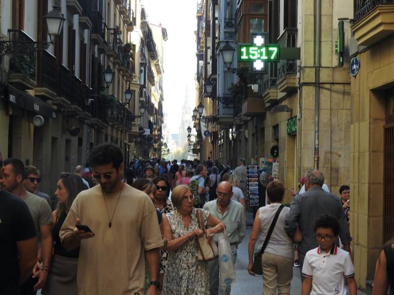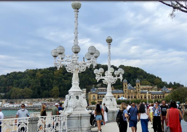 Het maken van pintxos is in San Sebastián tot een ware kunst verheven, de stad wordt ook wel de gastronomische hoofdstad van Spanje genoemd. Het heeft het hoogste aantal Michelinsterren per vierkante meter ter wereld en heeft tevens het hoogste aantal bars en restaurants van Spanje. We blijven hier zeker nog een dag, morgen is de Mercado open, de overdekte markt , daar hebben we heel goede herinneringen aan wat lekkere pintxos betreft. Het prijsniveau ligt hier wel wat hoger dan elders in Baskenland of bv Logroño waar we ook uitstekend gegeten hebben. Daar hebben we griep opgelopen en we weten dat we nu ook een zeker risico lopen op bv Covid, waar ik overigens de laatste tijd geen nieuwe cijfers over heb gelezen wat Spanje betreft. Maar de dochter, schoonzoon en de 2 kinderen van onze vrienden Kees en Trui hebben alle 4 Covid.