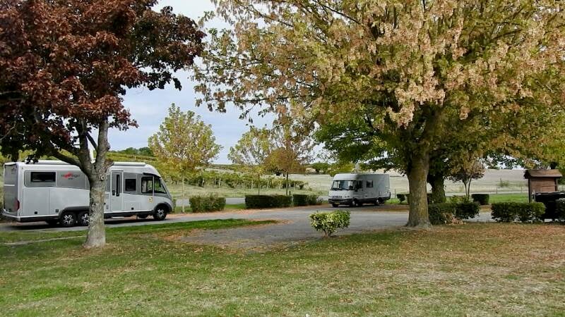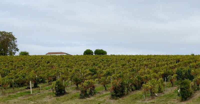 We wilden aanvankelijk ergens in Les Landes aan de kust gaan staan maar de weersverwachting van gisteren klopte niet met de werkelijkheid. In San Sebastián zou het regenen, daar was het droog. In Frankrijk daarentegen hebben we af en toe lichte regen en motregen gehad tot voorbij Bordeaux. We hadden geen zin om met slecht weer aan de kust te gaan staan en bovendien was er vandaag weinig vrachtverkeer, dat reed wel prettig. Zo waren we probleemloos om Bordeaux heen, het verkeer stroomde mooi door. 4 jaar geleden stond er vanuit Spanje 42 km voor Bordeaux, gelukkig gingen wij náár Spanje. Om 15.30 uur vonden wij het genoeg, 335 km gereden en zijn op een cp in Bellevigne neergestreken. Dat betekent mooie wijngaard, die zie je hier genoeg in de cognacstreek.