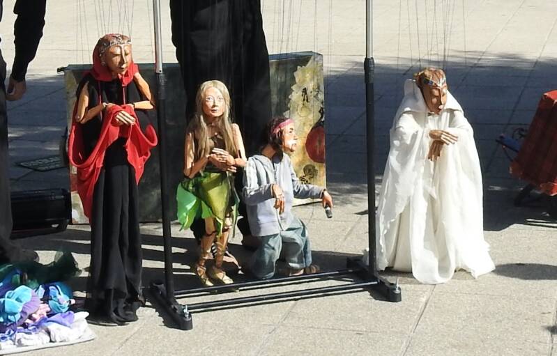 Diverse artiesten waren er op de boiulevard, waaronder deze marionettenpoppen.