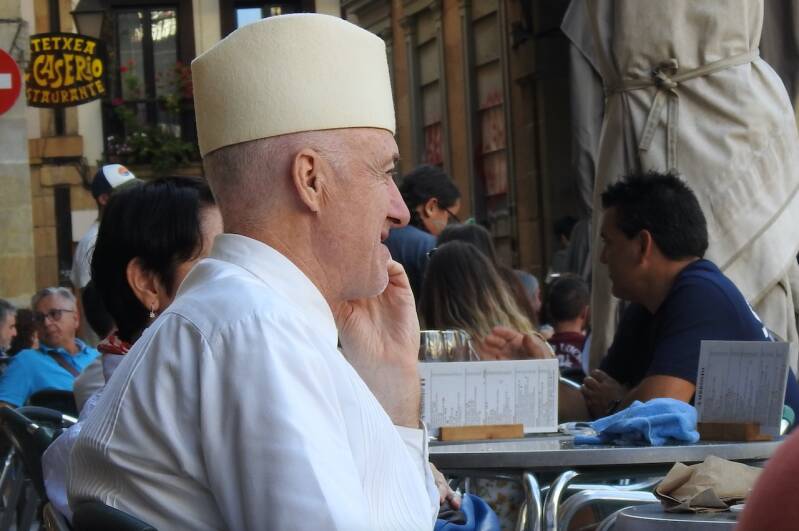 Dit lijkt ons nu niet een typisch Baskisch hoofddeksel, wel grappig om te zien.