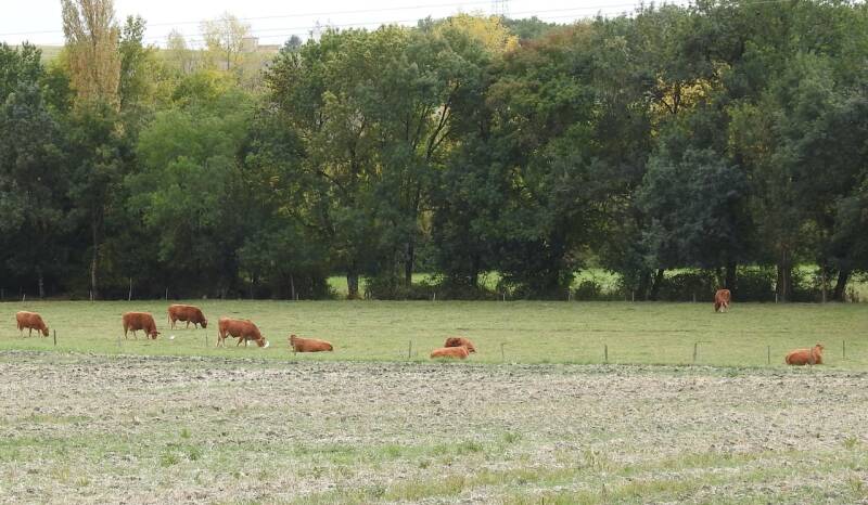 We stonden vannacht met 5 campers, naast de onze nog 3 Franse en een Duitse. Best veel voor een cp in een gehucht waar nog geen bakker zit. We zijn kort na half 10 vertrokken en omdat we niet via de tolweg gingen kwamen we wel door smalle weggetjes en kleine dorpjes met smalle straatjes. Omdat het agrarisch gebied was waren er ook tractoren en uitgerekend in een dorpje kwamen er 2 tractoren waar ook nog eens grote landbouwmachines achter hingen. We bleven merkwaardig rustig en we konden elkaar passeren doordat zowel de tractoren als wij met de wielen aan één kant over de stoep reden, wel even weer een billenknijpmomentje. Zelfs in de kleine dorpjes hingen spandoeken dat men hier aandacht had voor octobre rose , deze maand staat in het teken van aandacht voor borstkanker en men zamelt de hele maand geld in onder meer door evenementen te organiseren.