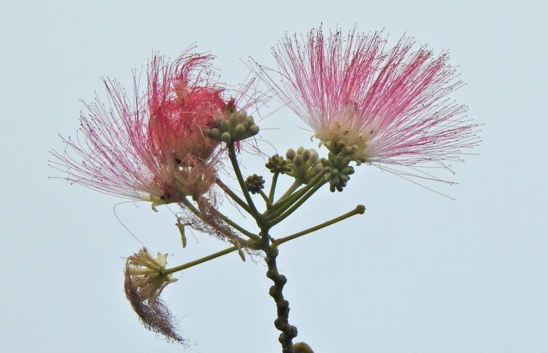 Hier in het dorp Bellevigne staat een Perzische Slaapboom in bloei