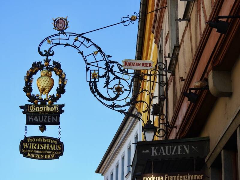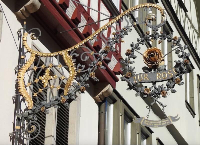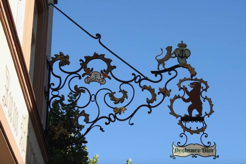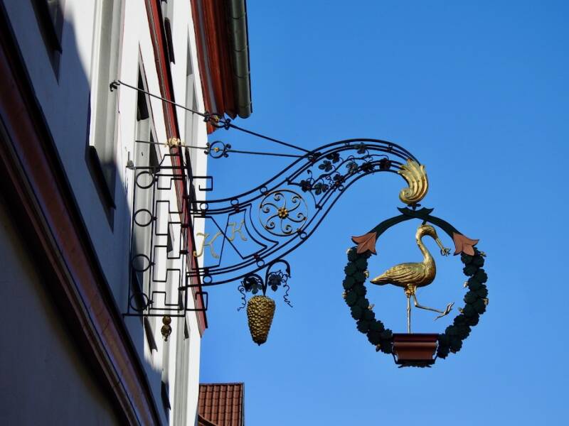 Enkele van de vele uithangborden die er te zien zijn in Ochsenfurt.
