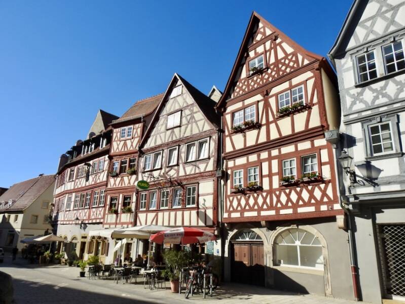 De kerk st Veit kon je wegens een dienst niet in, jammer omdat er een prachtige houtsnijwerk van de Beierse beeldhouwer Tilman Riemenschneider te zien is. Dat lazen we althans.