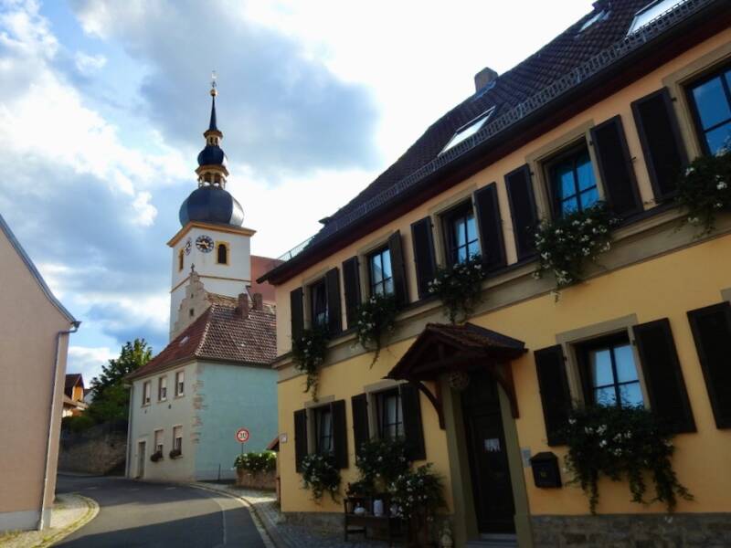 Mainstockheim stelt niets voor, een dorp zonder ziel. Je moet zelf leven in de brouwerij brengen wat we dan ook gedaan hebben, in de Biergarten van de plaatselijke kleine brouwerij hier die o.a. uitstekende Hefe Weissbier brouwt. Morgen en overmorgen bezoeken we wel wat dorpjes in de omgeving.