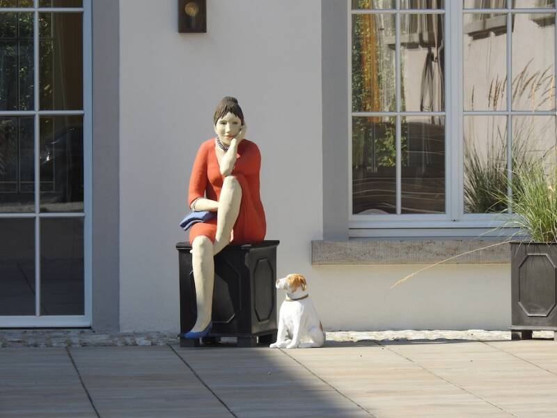 Op de binnenplaats bij een wijnboer waar je niet alleen wijn kon kopen maar ook eten stond een aardig beeld.