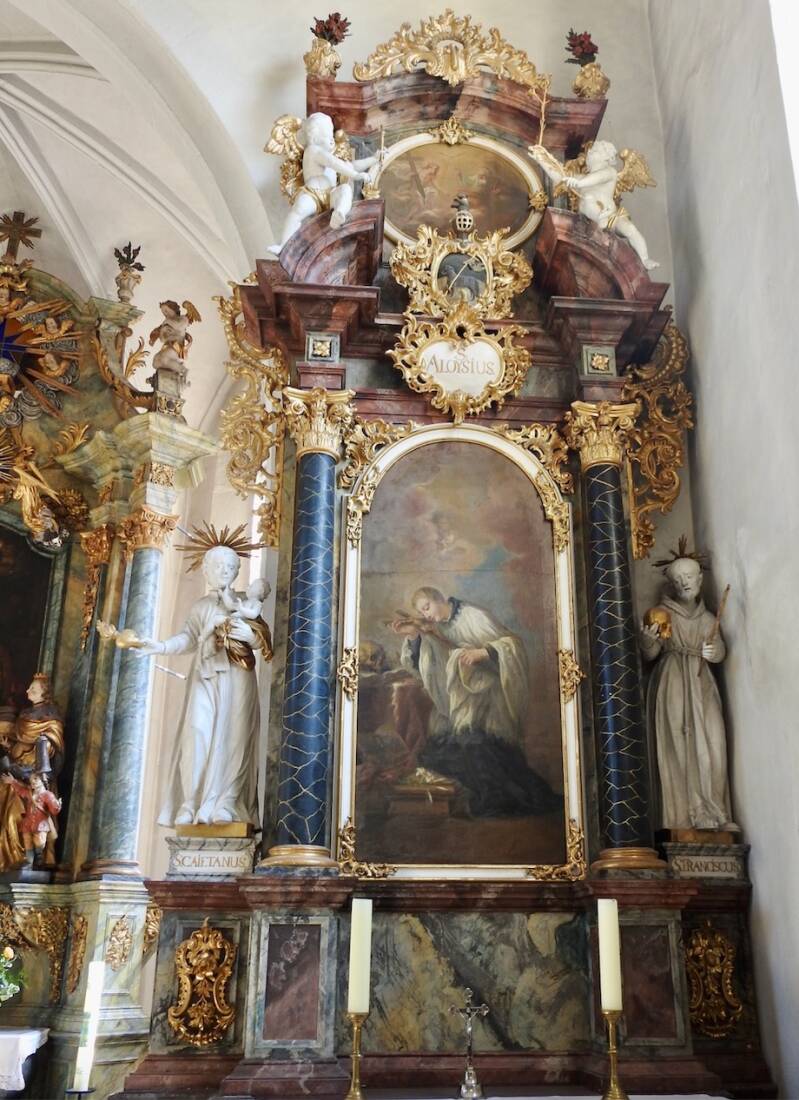 Rechts een schilderij van de heilige Aloysius op het rechter altaar.