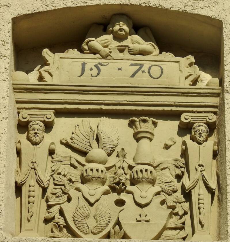 Na de koffie zijn we het stadje ingelopen, nadat we eerst een stuk over het pad langs de stadsmuren waren gewandeld. Iphofen is nl nog helemaal ommuurd, telt 3 stadspoorten en enkele vestingtorens waarvan er 1 achter de cp staat, de Eulenturm waarin gevangenen waren gehuisvest. De oudste en mooiste poort is de Rödelseer Tor.