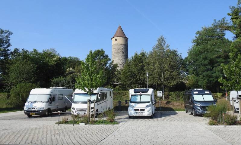 We zijn vanmorgen vertrokken uit Mainstockheim om een uur of half 10. We zijn naar Iphofen gereden, ongeveer 17 km verder. We hadden er al over gelezen en toen we gisteravond een mailtje kregen van camperforumlid Mario dat het stadje de moeite waard is , hebben we besloten om dit in onze planning op te nemen. We kwamen om 10.15 uur ( we hadden eerst boodschappen gedaan ) op de cp in Iphofen en hadden de laatste vrije plek, campers die na ons kwamen gingen op de busparking staan. Er zijn dan ook maar 10 plekken op de officiële cp die overigens gratis is.