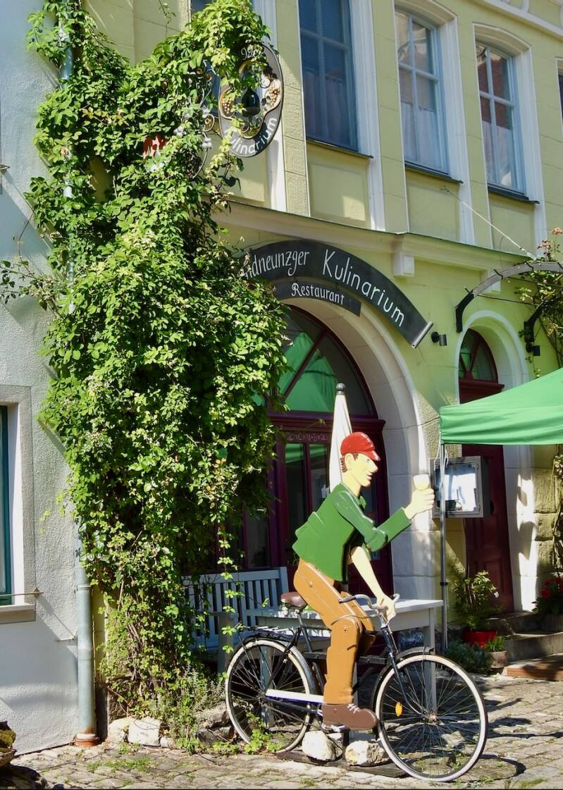 Het kleine centrum ziet er dan ook goed uit, een leuke sfeer ook, mede doordat er overal kleine terrassen zijn met (fiets)toeristen. Niet al te druk maar wel volop leven op straat, gezellig druk om het maar eens enigszins oubollig te omschrijven.