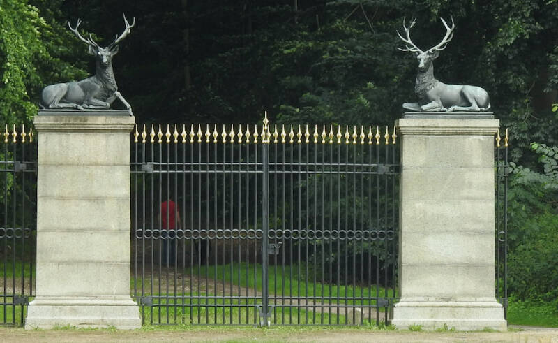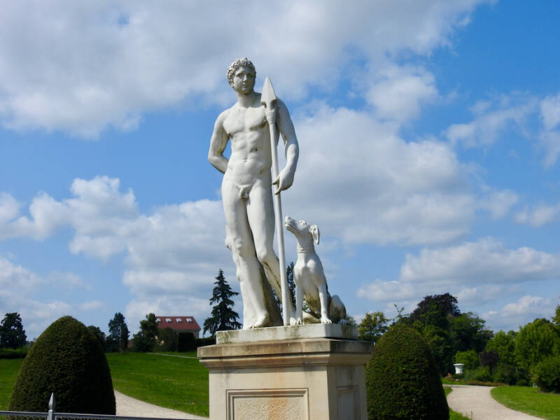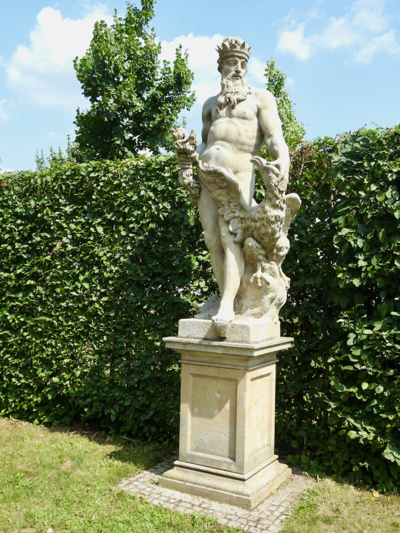 We hebben vandaag niet gefietst maar gewandeld en deze eindigde in de slottuin niet omdat die vlakbij de cp is maar vooral omdat hij mooi is met beelden en grote, eeuwenoude rode beuken. En omdat het vandaag warm was, 28º, was het daar prettig toeven.