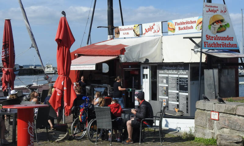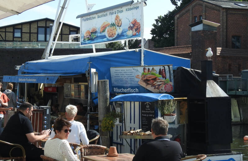 Een paar voorbeelden van de Imbisse waar ze vis en garnalen verkopen, gerookt, gebakken, met frites of op een broodje, voor elk wat wils. Ook wij hebben er een paar x gebruik van gemaakt en ben ik er achter gekomen dat men hier onde Krabben geen krab verstaat maar garnaaltjes.