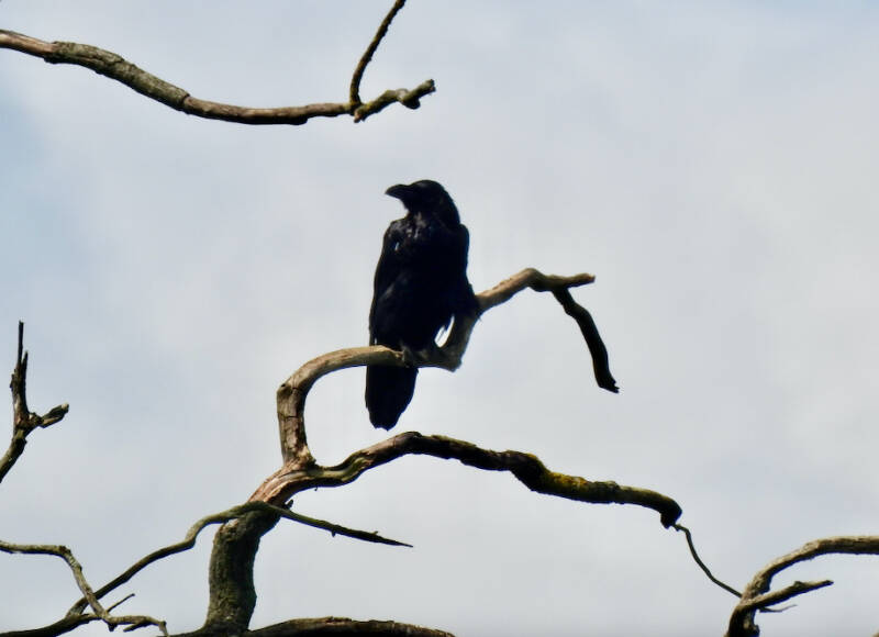 Tijdens het fietsen zat er een raaf in een veld in een dode boom. Everdien vond het rauwe Krroa, krroa een beetje angstaanjagend.