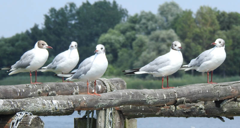Een stelletje jonge kokmeeuwen bij elkaar. Bij een volwassen kleed dan hebben ze een chocoladekleurige kap op de kop.