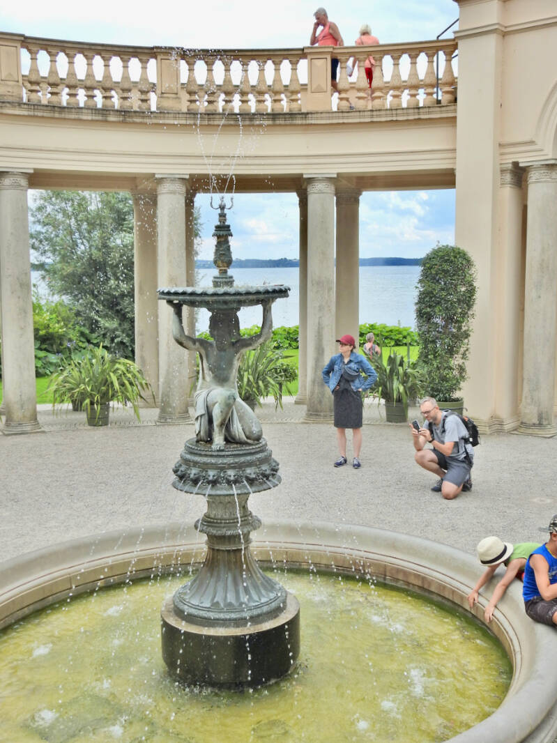 Maar er was genoeg te zien, er is een mooie barokke slottuin. Niet zo groot want het slot is op een eilandje gebouwd. Middenin de slottuin is een fraaie oranjerie , met bloemenveldjes en een aardige fontein. Voeg daarbij wat beelden die er staan en je hebt een mooi geheel.