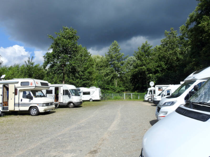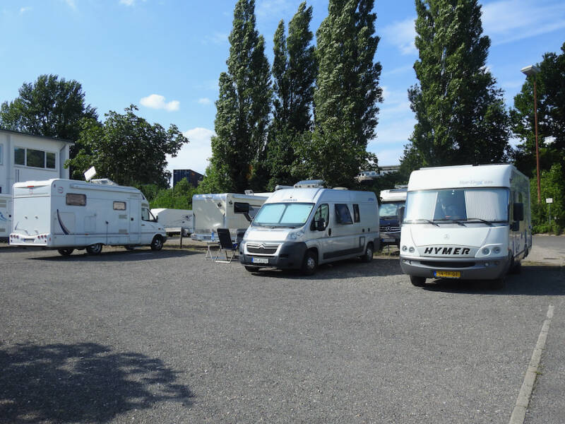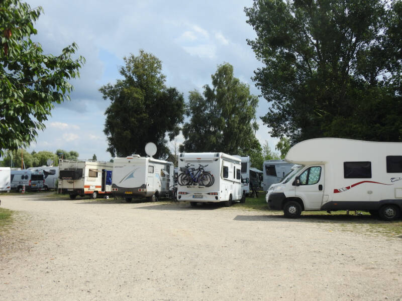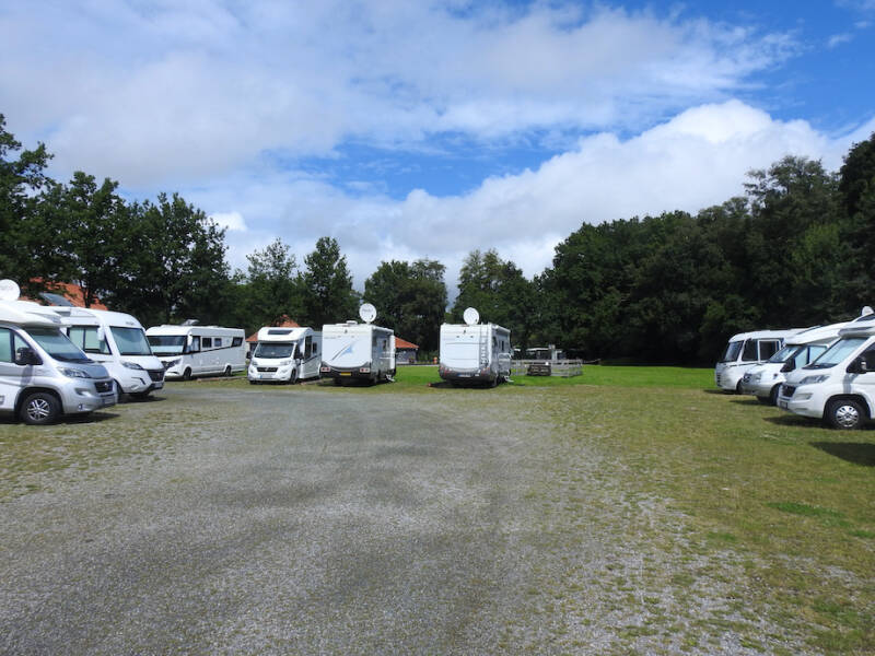 Er kunnen hier 25 campers staan, er staan er nu nog een stuk of 15, enkele campers kwamen hier een paar uur om de stad te bezichtigen.