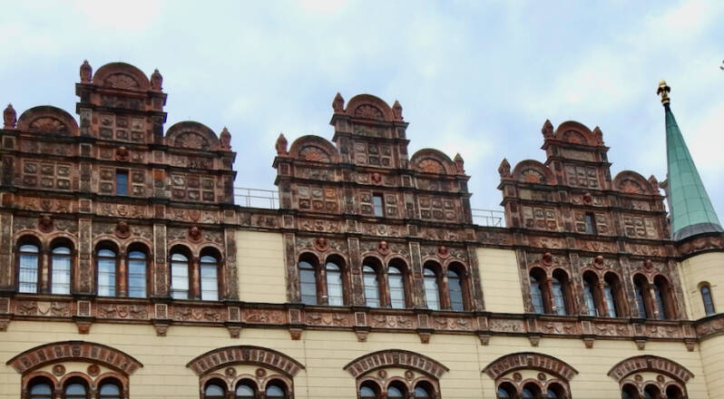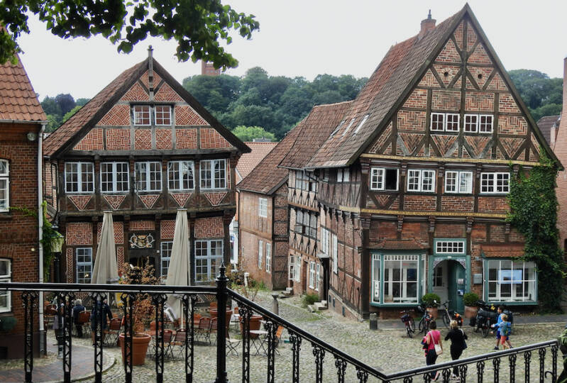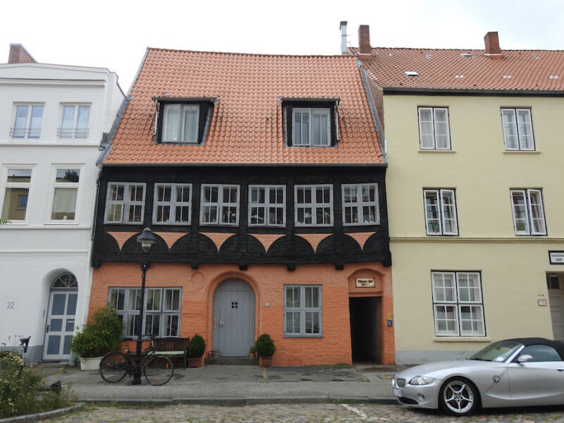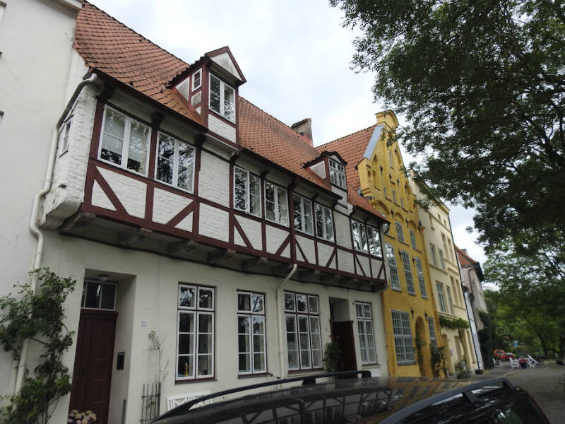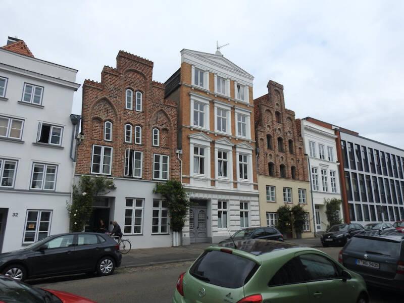 Karakteristiek huizen in het wijkje tussen de Dom en de Trave