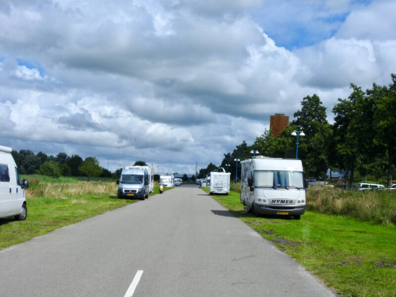 Gisteren was het maar 110 km rijden naar Groningen, we waren er zo, geen opstoppingen of zware buien. We hadden in de buurt van Oldenburg overnacht op de cp in Westerstede waar je je alleen kunt aanmelden tussen 8.30uur en 11.00 uur ’s ochtends. Dus aanmelden en meteen betalen in ons geval van 1 overnachting. We moesten nog wel, als mosterd na de maaltijd, ons gele boekje met de vaccinaties laten zien.