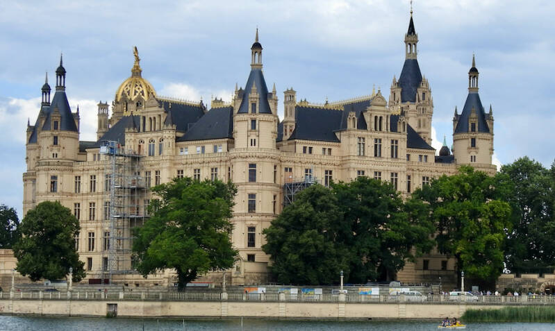 Het slot Schwerin is op een eilandje gebouwd (1843- 1857)