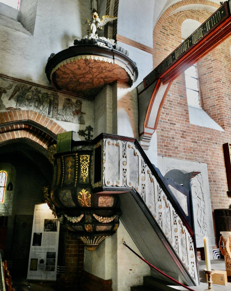 We kwamen bij de Jakobikirche met een interieur die de moeite waard is. Het is een 15e eeuwse kerk en bezit 2 orgels.