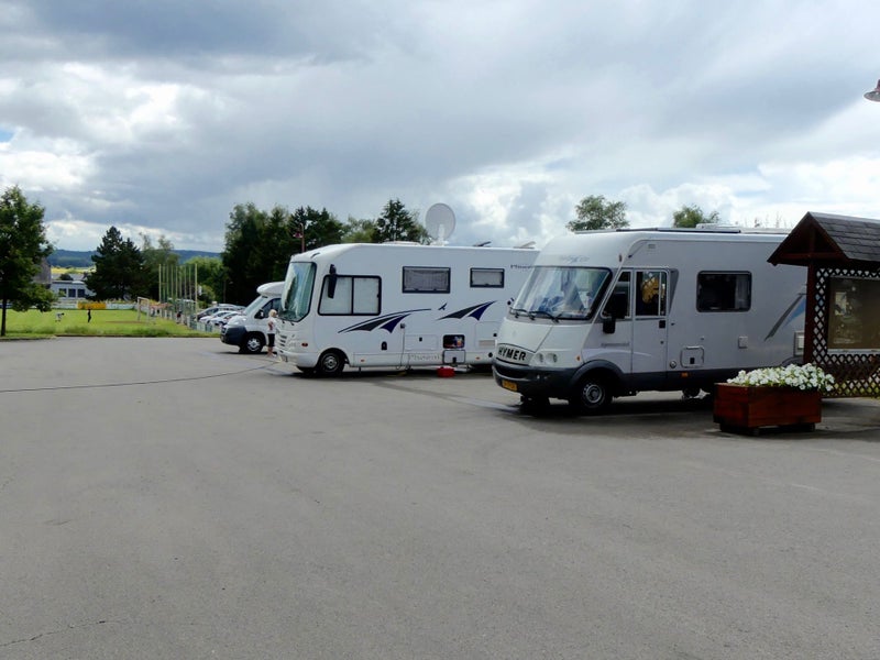 De gratis camperplaats is op een parking waar ook schoolbussen staan. Er zijn voorzieningen en er is zelfs gratis stroom. Er is een zwembad vlakbij, sportvelden en een speeltuintje dus kinderen zouden zich prima vermaken. Toch zijn de 8 campers ( Belgen en Nederlanders) die hier staan bewoond door leeftijdgenoten. En omdat we in Luxemburg staan hebben we goedkoop getankt.