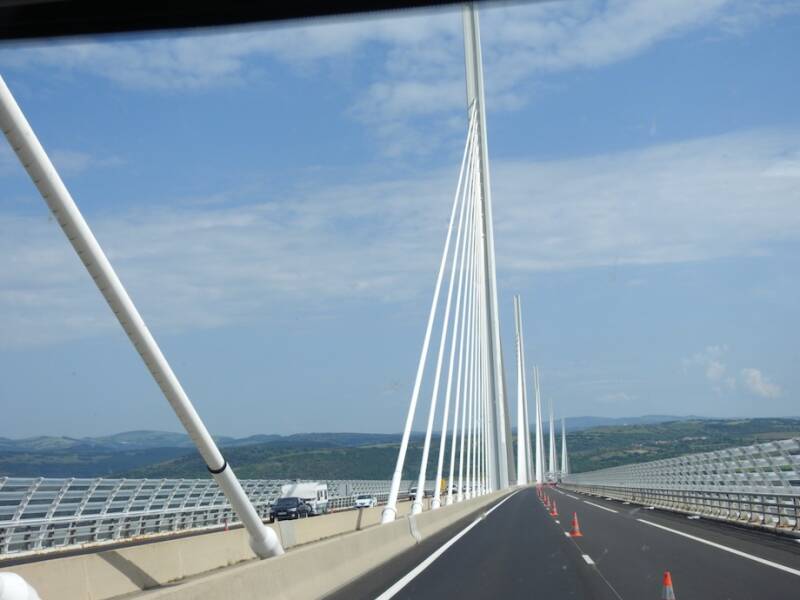 Een heerlijk rustig mooi plekje waar we hebben overnacht, heerlijk in de natuur. Nu staan we op een ander mooi plekje, er zit wel 500 km tussen. We wilden niet zo heel ver rijden vandaag, maar op de A75 was helemaal geen vrachtverkeer, Dat hadden we niet verwacht, we dachten dat de Fransen niet zo van de 2e pinksterdag waren. We kennen de A75 goed omdat we een vriend hebben gehad die een camping heeft gehad bij Pas de L’ Escalatttfe, dat is als je de hoogvlakte, het Massif Central op gaat. Vlak nadat we de pas waren opgeklommen, het laatste deel via een tunnel, zagen we een groep van wel 50 gieren, althans zoveel waren het er volgens Everdien, ‘kijk voor je op de weg!’ In de buurt van Clermont Ferrand hebben we even gepauzeerd en we besloten toen om geen secondaire wegen door Noord Frankrijk te rijden maar de tolweg te nemen. Eerst een stuk van de tolweg naar Parijs en vervolgens via de nieuwe tolweg de A79 naar Saint Pourcain te rijden. Maar omdat er nog steeds geen vrachtverkeer was en we beiden ons fit genoeg voelden, hebben we geluncht en besloten nog een stukje verder te rijden . De tolweg werkt volledig electronisch, als je een tolbadge hebt wordt die geregistreerd en geld afgeschreven. We hebben wel een tolbadge maar die werkt niet achter ons raam omdat die een speciale coating heeft. Dus worden wij geregistreerd en moeten dan betalen via www.aliae.com binnen 72 uur.
