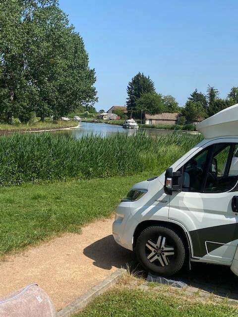 We konden nog een plekje krijgen aan een kanaal bij Digoin in het dorpje Molinet en het is een gewild plekje, meer dan vol hoewel wij een ruime plek hebben . Tot in de avond komen er campers binnen die weer om moeten keren. Er zijn hier 14 plaatsen, op het gras zijn er 4 extra gaan staan. Het is dan ook een leuk plekje, aan het kanaal met af en toe een tuffend bootje die voorbij komt.