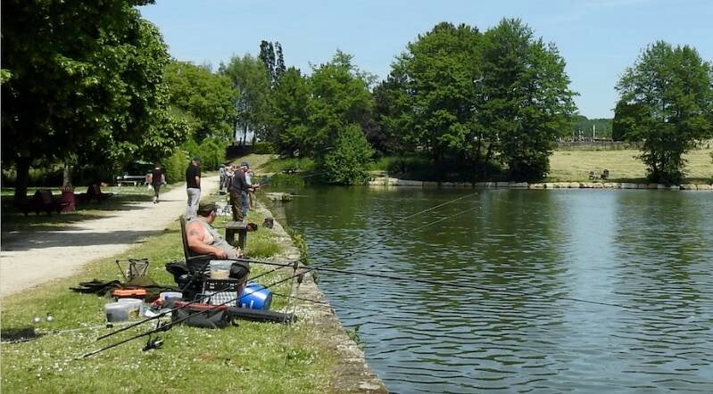 Bij de cp in Bulgnéville is een meertje. Met dit mooi weer zijn er de nodige vissers.